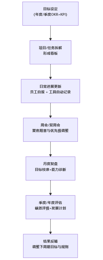 - 规定每周/每月的固定绩效沟通频次(如周例会+月一对一);