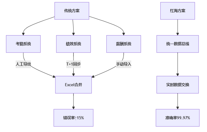 某快消企业使用独立系统管理考勤与薪酬,每月需人工导出20万条打卡记录匹配薪资规则。在2023年个税新政实施时,因数据同步延迟导致全员薪资重算,直接损失超80万元。这类问题暴露出平台架构的先天缺陷:缺乏原生集成能力。