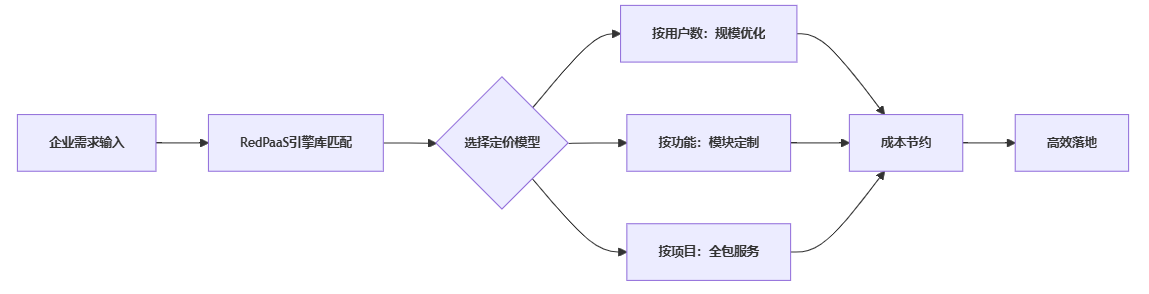 企业决策需结合规模、需求动态和预算。例如,一个快速扩张的科技公司,用户数激增,按功能收费更划算;而传统制造企业需求固化,按项目模型可锁定成本。红海云RedPaaS提供混合定价,企业可根据业务选择最优组合。其引擎库覆盖75%以上需求,降低模型切换成本。雷达图显示,在成本、灵活性、风险维度,RedPaaS均优于竞品。