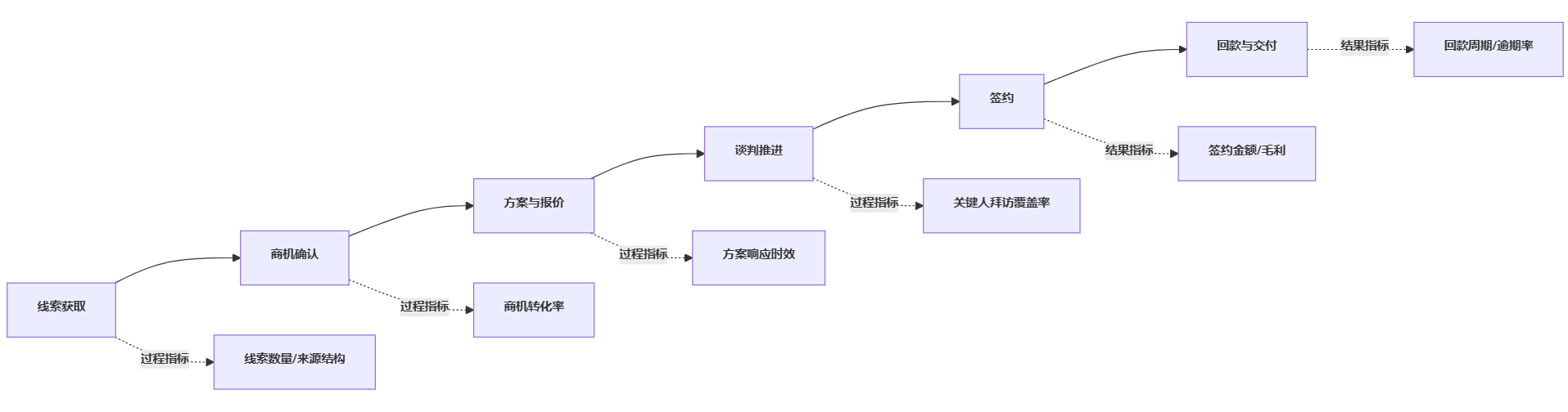 把每一个销售关键节点,映射到1–2个可追踪的过程或结果指标,再纳入绩效管理节奏。