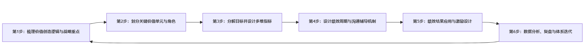 本模块的核心结论是:高知识密度企业的绩效体系不是一套“打分表”,而是一套从战略到落地、从个人到组织的运行系统。用6步方法来概括,可以帮助企业看清每一步的关键产出和责任主体。