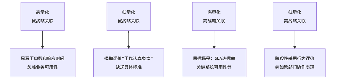 图示:IT支持指标设计常见陷阱象限图(示意)