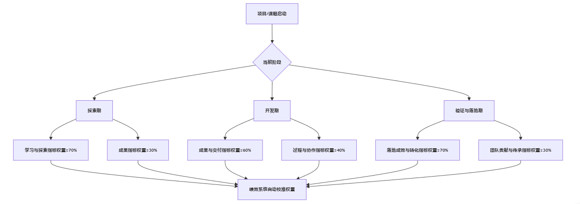 咋实践中总结的做法是:对创新研究岗位,通常建议过程类指标在早期阶段权重不低于50%,随着方向逐渐成熟,再让结果类指标比重增加。