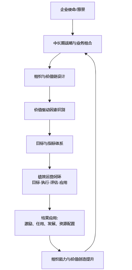 可以用一个简化的框架图理解价值驱动型绩效体系在企业中的位置: