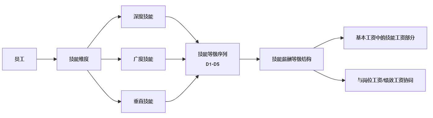 在同一企业内部,以员工经组织认证的知识与技能水平为核心变量,构建起不同技能等级之间薪酬水平及差异关系的结构。