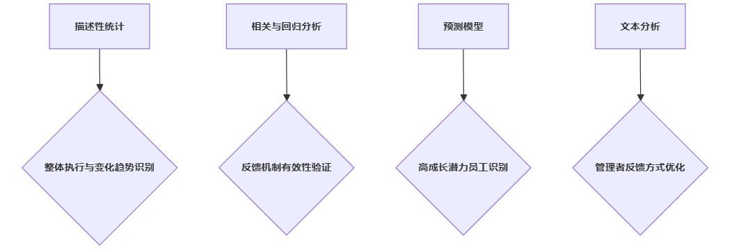 - 设计两三个关键问题,选择合适的绩效反馈效果数据分析方法进行验证,避免一上来就追求复杂模型。
