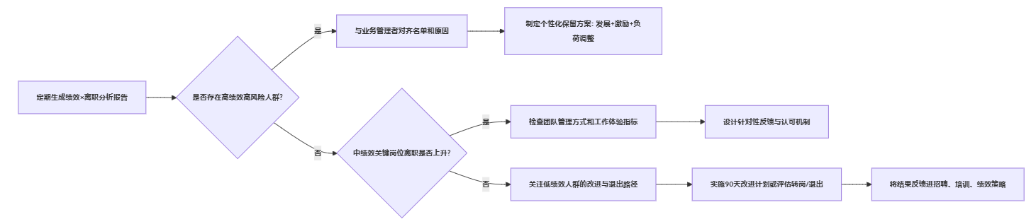 分析本身不创造价值,能够驱动管理行为的分析才有意义。本部分聚焦一个核心问题:在理解了绩效与离职关系之后,HR和管理者可以做些什么?如何用这些发现,指导更有针对性的人才决策?