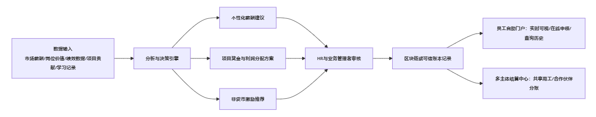 - 技术上,AI、数据平台和可信账本使薪酬决策更为动态、个性化和可追溯,给复杂共创共享关系提供了必要的基础设施;