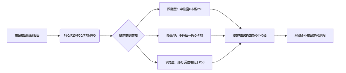 - 定位在市场中位水平:中位值对标市场 P50