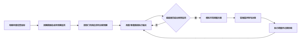 理想状态下,薪酬总成本的管理,不是年初定目标、年底算结果,而是一个持续的、可调节的过程。可以用一个简化流程图来表示: