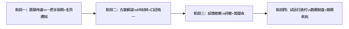 - 按照“愿景传递—方案解读—反馈收集—试运行迭代”的路径组织沟通;