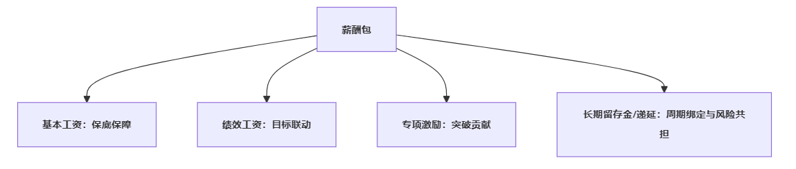 - 长期留存金/递延解决关键人才留存与风险共担(特别适用于高管、核心骨干与关键岗位)。