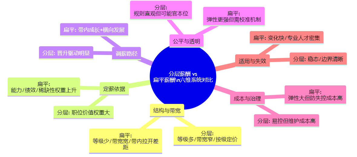2. 扁平薪酬:更能贴近业务变化,但要防“薪酬漂移”与预算失真