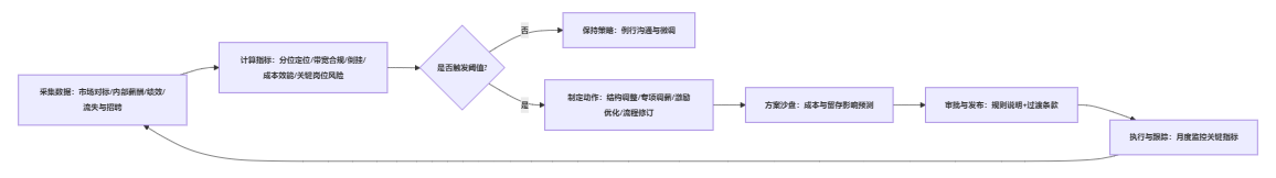 很多企业一年做一次对标与调薪,但市场变化已经更快。闭环迭代的目标,是把“年更”变成“季度体检”,在小幅调整中保持竞争力,而不是等到流失恶化再大修。