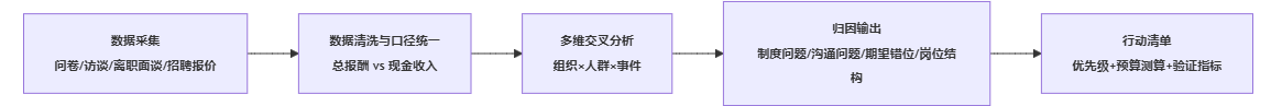 | 风险结果 | 离职意向、外部机会强度 | 问卷+离职面谈 | 需与业务景气、岗位供需一起解释 |