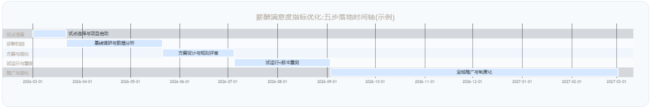 包括带宽、对标口径、绩效映射、沟通机制与系统配置。 - 第4步:小范围试运行+满意度复测(6-8周)