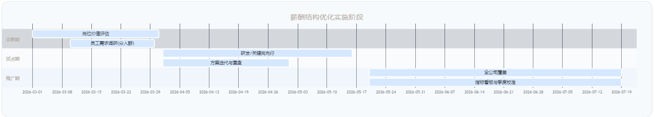 图表2:薪酬结构改革三阶段甘特图(诊断→试点→推广)