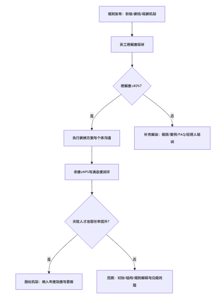 - 渠道畅通:设置可以提问、申诉与反馈的通道(HRBP面谈、匿名问卷、季度说明会),并承诺响应时限。