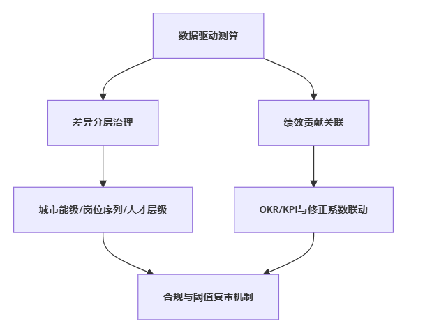 | 法律与合规风险 | 同岗差异无法解释、口径不一致 | 做“差异来源”留痕;结构性调整优先;定期合规复核 |