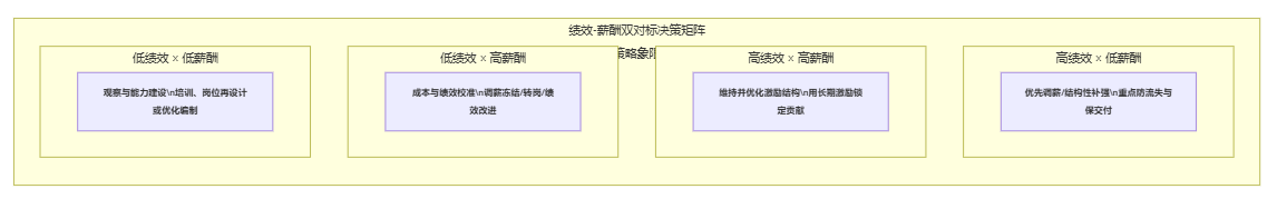 只看薪酬对标,容易得出“都应该涨”的结论;只看绩效,又可能忽略市场稀缺导致的替代成本。更可操作的是做绩效-薪酬双对标,把对标结果直接翻译成资源配置动作。