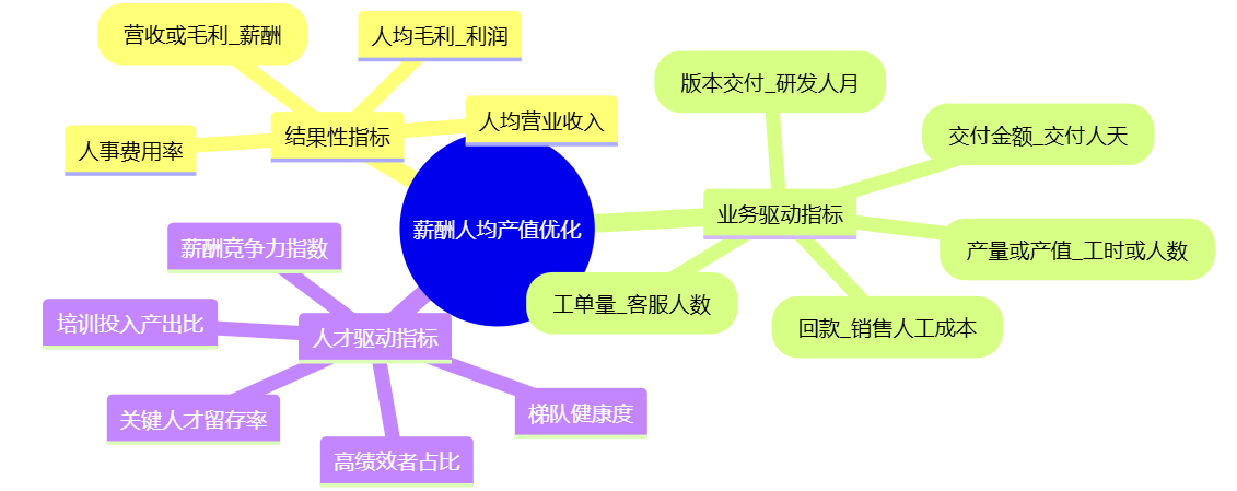 没有数据体系的优化,往往靠感觉;靠感觉的优化,往往靠“砍”。要让薪酬人均产值指标真正变成管理工具,需要一套从结果到驱动、从监测到干预的指标体系,并能在组织内形成责任承接。
