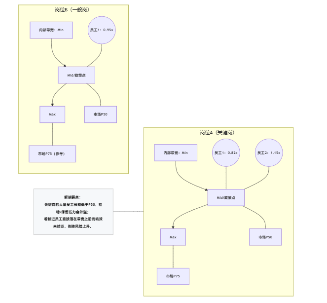 图表2:岗位薪酬带宽与市场分位值对标示意图(Mermaid)