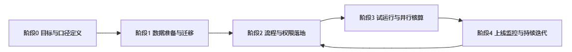 - 阶段4:上线后的监控与迭代(持续):监控错误率、超预算预警命中率、预算执行偏差、报表使用率;按月迭代规则与报表。