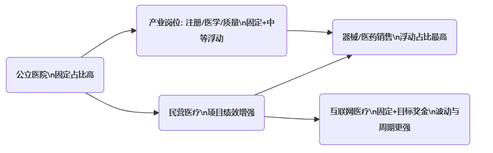 边界条件也需要说明:公立医院受绩效总量、编制/备案、院内分配规则影响;医药器械企业受区域业务增长、合规投入与产品生命周期影响;互联网医疗受融资与增长模型影响更大,波动也更高。