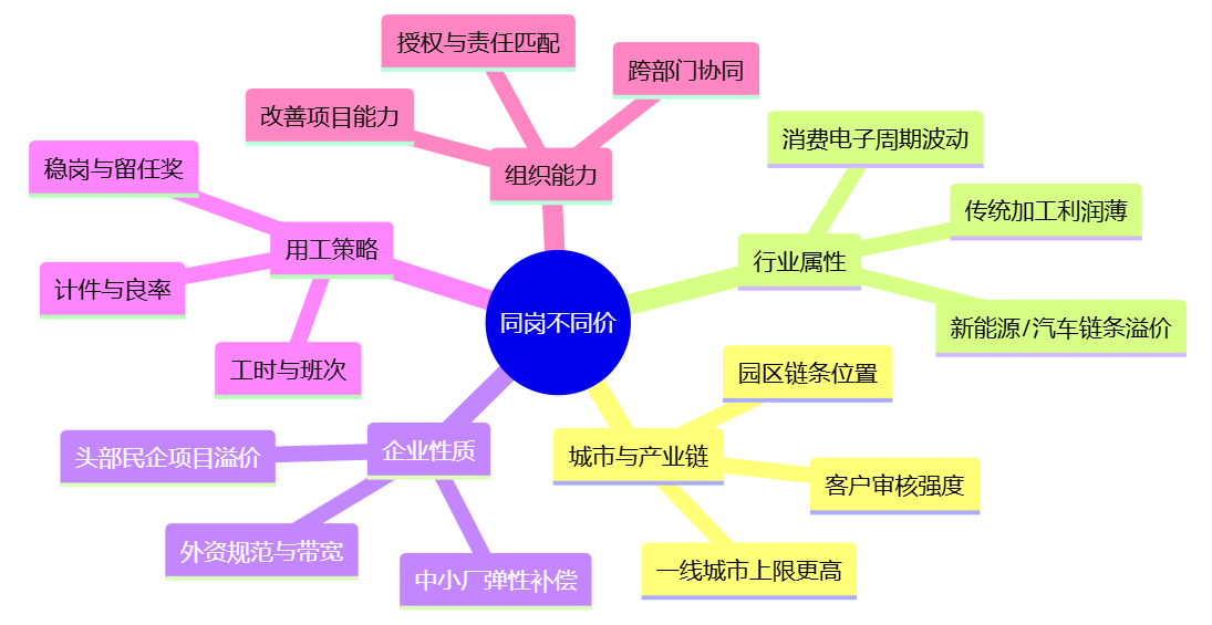 图表2:珠三角制造业薪酬差异的主要驱动因素(思维导图)