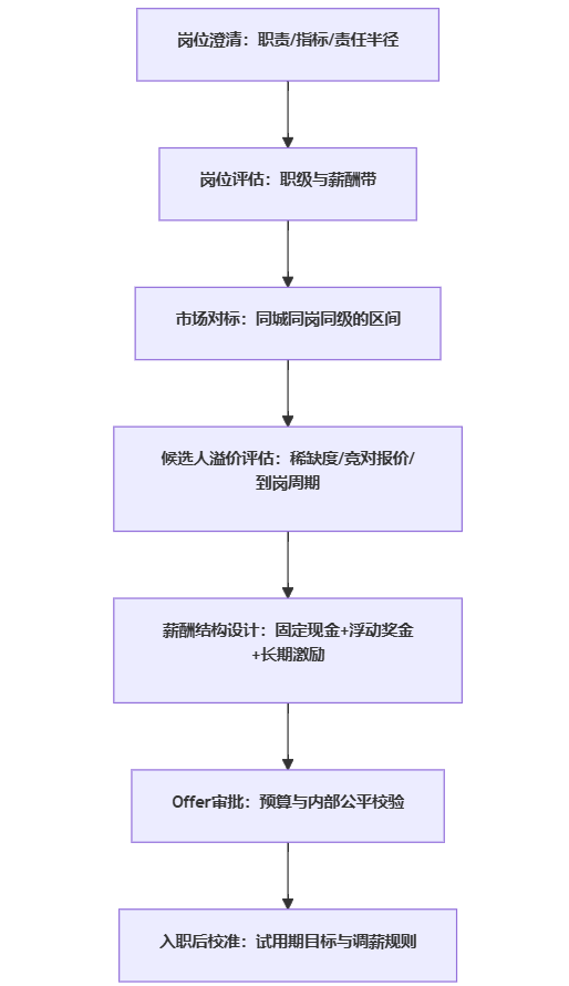 这个流程的好处是:让“高价招人”变得可解释,也让“不给溢价”有制度依据。反例是:业务急招但岗位边界不清,容易以高薪买到不匹配的人,试用期后成本更高。