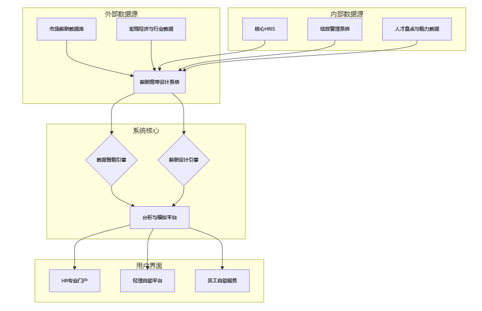 下面这张架构图,用来帮助团队在选型时统一认知:你买的不是“一个薪酬模块”,而是一个连接内外数据、驱动决策协同的系统。