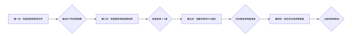 过渡到下一部分:有了“标尺”还不够,选型是一场项目战,需要把决策拆成可控步骤,才能把风险压到上线前。