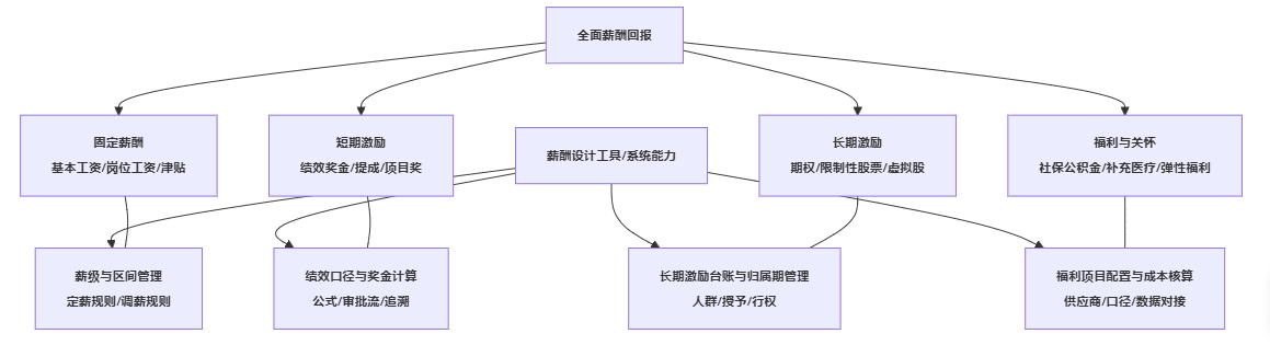 图表1:全面薪酬回报结构与工具支撑点(Mermaid结构图)
