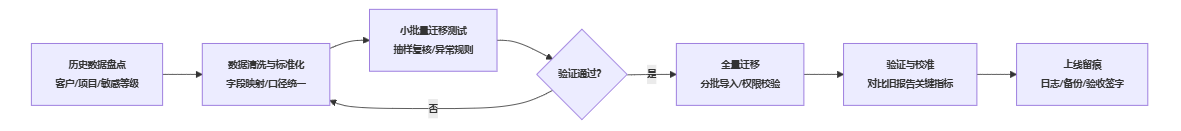 (1)数据迁移风险:历史数据清洗与验证不可省略
