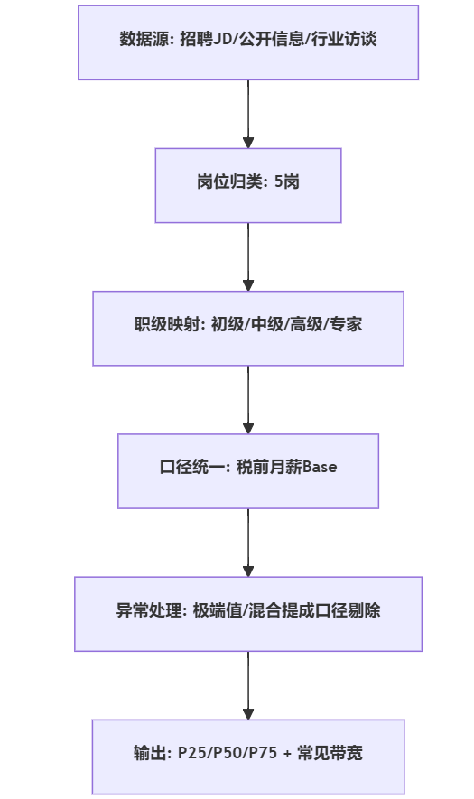 本文的薪酬数据以“税前月薪Base”为统一口径,输出形式为P25/P50/P75(分位数)与常见带宽。这样做的价值在于:它能直接用于岗位定价、Offer落点、内部同岗对齐,也能减少年终、股权、补贴与提成带来的不可比性。