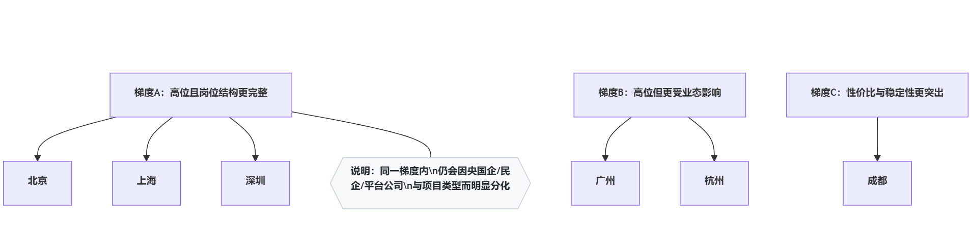 在行业调整期,城市之间“均值差距”未必显著扩大,但同城不同企业、同岗不同项目的差距在变大。