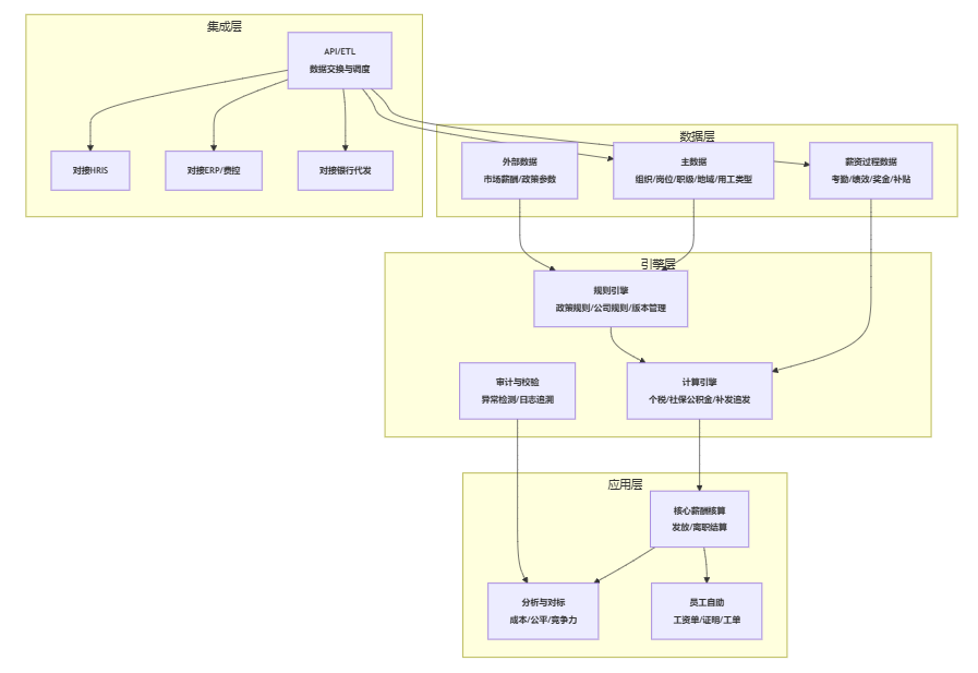 图表2用结构图呈现“现代薪酬本地化工具”的常见能力分层,便于技术、HR与财务在同一图上讨论边界。