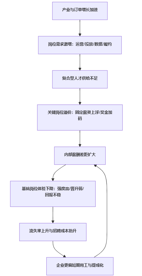 一个需要提前提示的反例:如果企业有较强的培训体系与标准化流程(例如可复制的选品方法、投放SOP、客服知识库、物流异常处理机制),那么供需错配会显著缓解,薪酬差距不必被动扩大,组织可以用“培养”替代“抢人”。