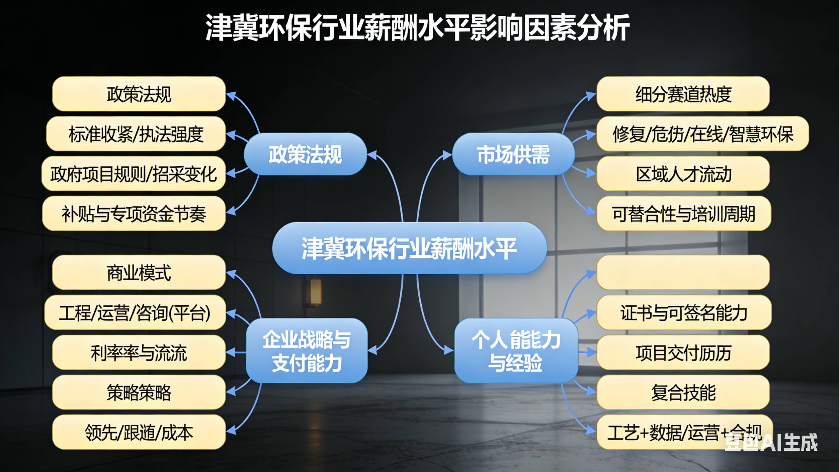 津冀环保行业薪酬的“表面波动”,背后是四个变量的相互作用:政策法规决定约束强度,市场供需决定稀缺度,企业战略决定支付边界,个人能力决定议价筹码。