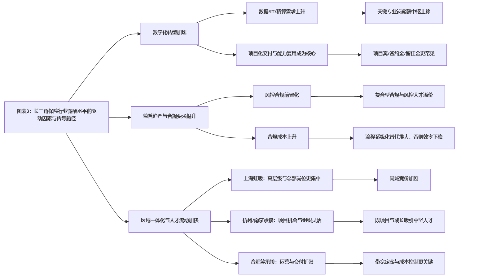 长三角保险行业薪酬的“高”,更多体现为招聘端价格与人才竞争强度更高;同时内部存在清晰的城市梯队与职能分化,导致企业在不同城市、不同岗位上感受到的招人难度并不一致。