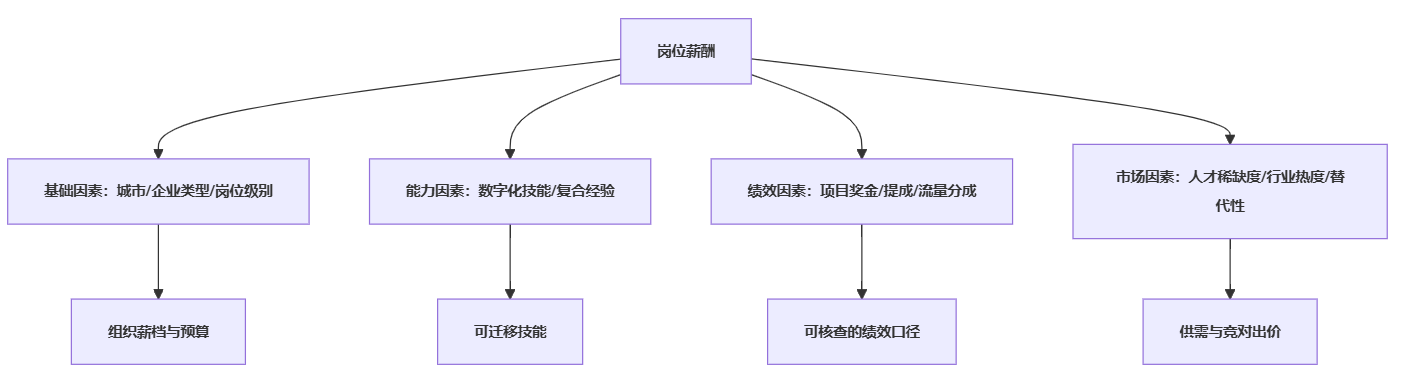 这解释了一个常见现象:同一岗位名称,在不同公司薪资差异巨大。差异不是HR“拍脑袋”,而是岗位被放在不同的价值链上: