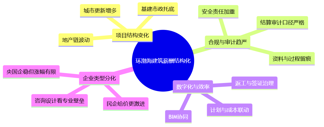 环渤海建筑行业薪酬的变化,不是单一宏观因素推动,而是多因素叠加后的结构性结果:项目从增量转存量、从速度转合规、从经验转数据。