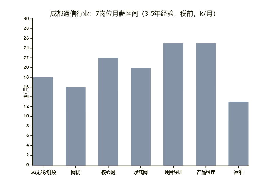 图表1:成都通信行业7岗位月薪区间对比(中位段示意)