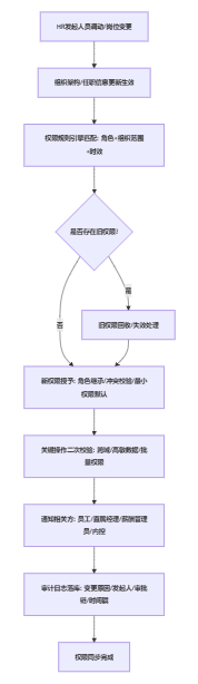 图表1 薪酬权限随人员调动自动更新流程图(Mermaid)