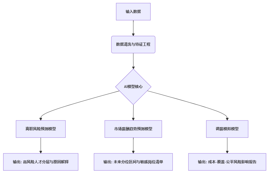- 核心人才离职风险预测:结合薪酬相对市场分位、内部compa-ratio、绩效趋势、岗位稀缺度、任职时长等变量,输出风险分层与干预建议(例如优先保留清单)。