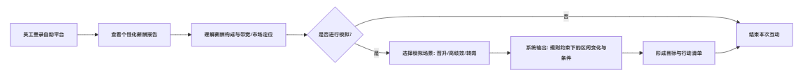 | 个性化沟通与模拟器 | 员工自助入口、规则引擎、权限与脱敏 | 中 | 降低沟通成本;提升薪酬理解度与规则认同 |