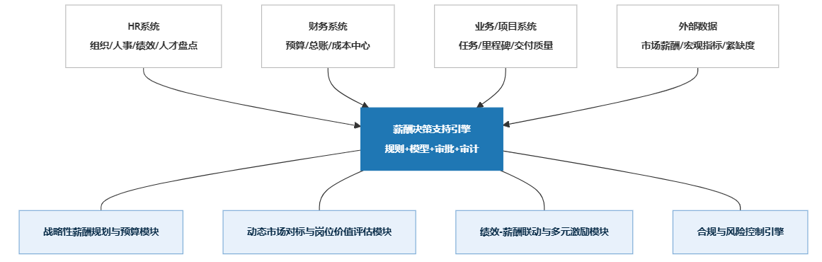 一个可持续的薪酬决策支持体系,必须把战略、市场、绩效与合规连接为一体化模块;缺任何一块,都可能出现“算得出、批不下、落不了、解释不清、风险兜不住”的断裂。