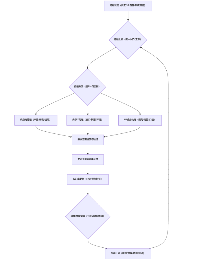 在实践中,我们建议至少设定两类闭环:一类是“事件闭环”(确保当期发薪不受影响),另一类是“根因闭环”(防止下月复发)。若只做事件闭环,系统会越来越依赖人工兜底;若只做根因闭环,员工当下体验会被牺牲,组织信任仍会受损。