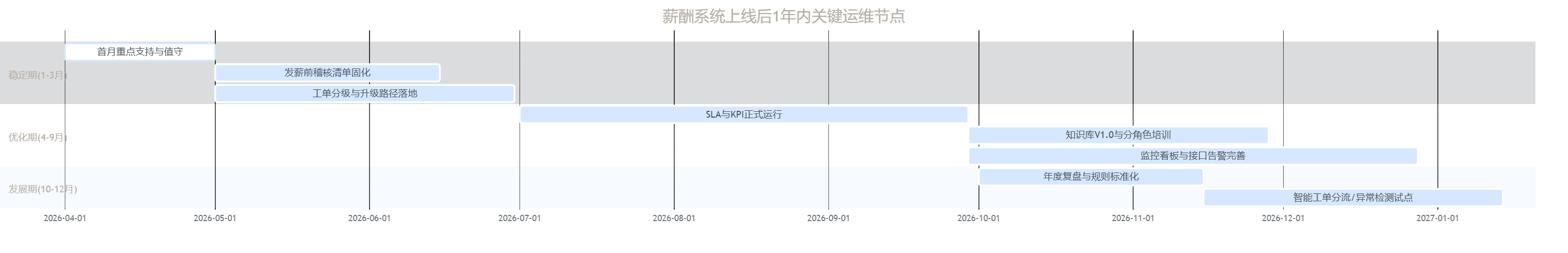 图表3:薪酬系统上线后关键运维节点(上线后1年内)甘特图