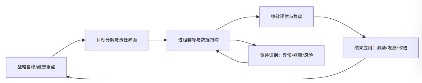 制造型企业的绩效管理至少需要包含五个完整环节:战略目标与经营重点明确、目标分解与责任界面清晰、过程辅导与数据跟踪、绩效评估与复盘、结果应用与改进计划。在这一前提下,许多企业的问题并非不会打分,而是缺失了中间的过程辅导与偏差纠正,等到月底发现偏差时,管理者只剩下加班与甩锅两种选择。